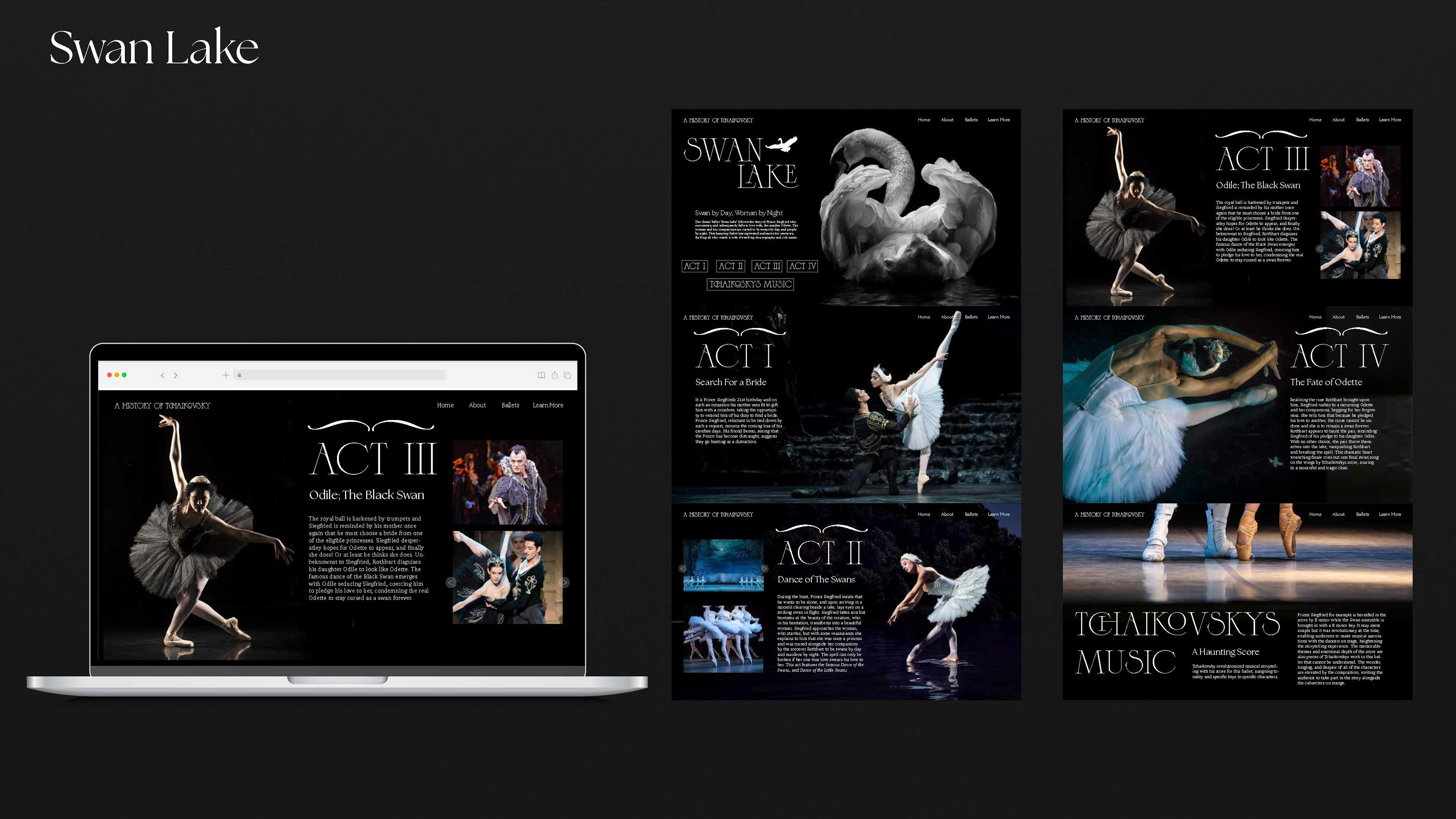 Tchaikovsky is responsible for revolutionizing storytelling in music. He experimented with new ways to bridge the gap between the story and the audience, and although my work is far from the realm of music, I too wish to find the most effective ways to bridge the gap between audiences and information. This website was written and designed by myself as a tribute to Tchaikovsky’s work.